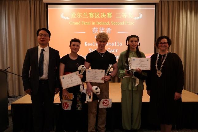 都柏林大学孔子学院选送的三名选手在本次比赛中表现出色,斩获多项重要奖项。其中,Chloe Holohan同学凭借卓越的表现荣获一等奖;Keely Costello和Nathan Carr同学则分获二等奖。