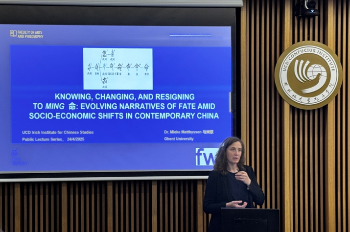 To celebrate International Chinese Language Day, a special public lecture and the 58th Confucius PhD Forum was successfully held on 24 April 2025 by UCD Irish Institute for Chinese Studies. The event featured a keynote lecture by Dr. Mieke Matthyssen from the Department of Chinese Studies at Ghent University, Belgium. Entitled Knowing, Changing, Resisting, and Submitting to Ming 命: Evolving Narratives of Fate Amid Socio-Economic Shifts in Contemporary China, the talk attracted nearly 100 participants—including students, scholars, and Chinese culture enthusiasts—both online and in person.